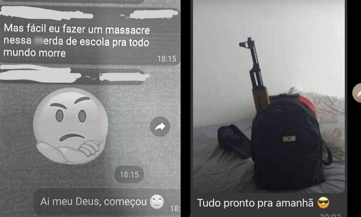 A adolescente, que não teve idade e nem nome revelados, teria postado as ameaças em um grupo de mensagens da instituição e, em seguida, teria mandado a foto de um fuzil com a legenda: “Tudo pronto para amanhã”.