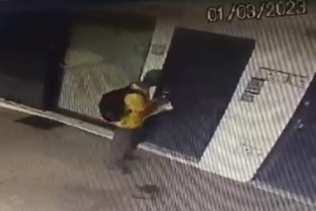 Câmeras de segurança de um dos estabelecimentos captaram toda a movimentação do homem no último dia 1°/3. De boné e mochila, o andarilho passa de porta em porta distribuindo as cartas.