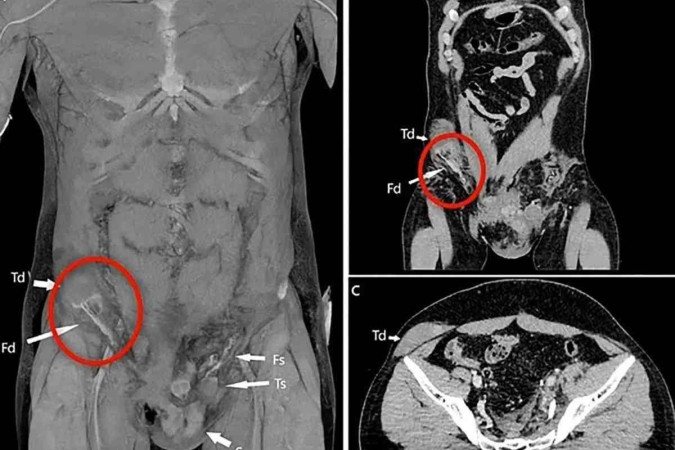 Por meio de tomografia, os médicos conseguiram ver que para onde o testículo havia se deslocado e concluíram o diagnóstico. Os especialistas precisaram operar o homem para colocar o órgão de volta no lugar.