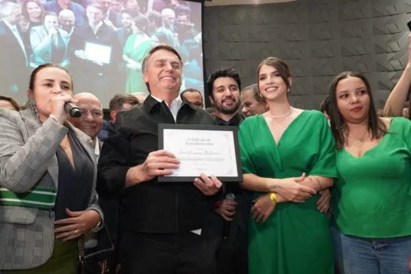 O ex-presidente recebeu a honraria durante a solenidade proposta pelo deputado estadual Fred Rodrigues (DC). Em seu discurso, o parlamentar afirmou que Bolsonaro “não é só um candidato, e sim um sentimento”.