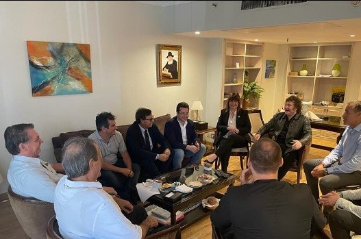 O encontro aconteceu no hotel Libertador, onde Milei está hospedado durante a transição, e teve a presença do deputado Eduardo Bolsonaro (PL-SP), filho do ex-presidente.