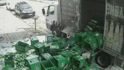Brasil Vídeo: entregador se atrapalha e carga de cerveja desaba de caminhão Caso ocorreu em Santos e foi registrado por uma câmera de monitoramento. Segundo apurado pelo g1, ninguém ficou ferido. Reprodução Uma carga de cerveja…