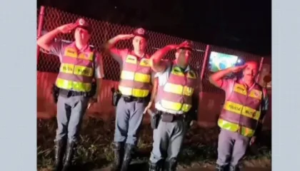 Brasil PM investiga policiais que bateram continência em bloqueio ilegal Imagem que circula nas redes sociais mostra gesto feito por parte de agentes estaduais a manifestantes durante fechamento da Rodovia Cândido Portinari em Franca.…