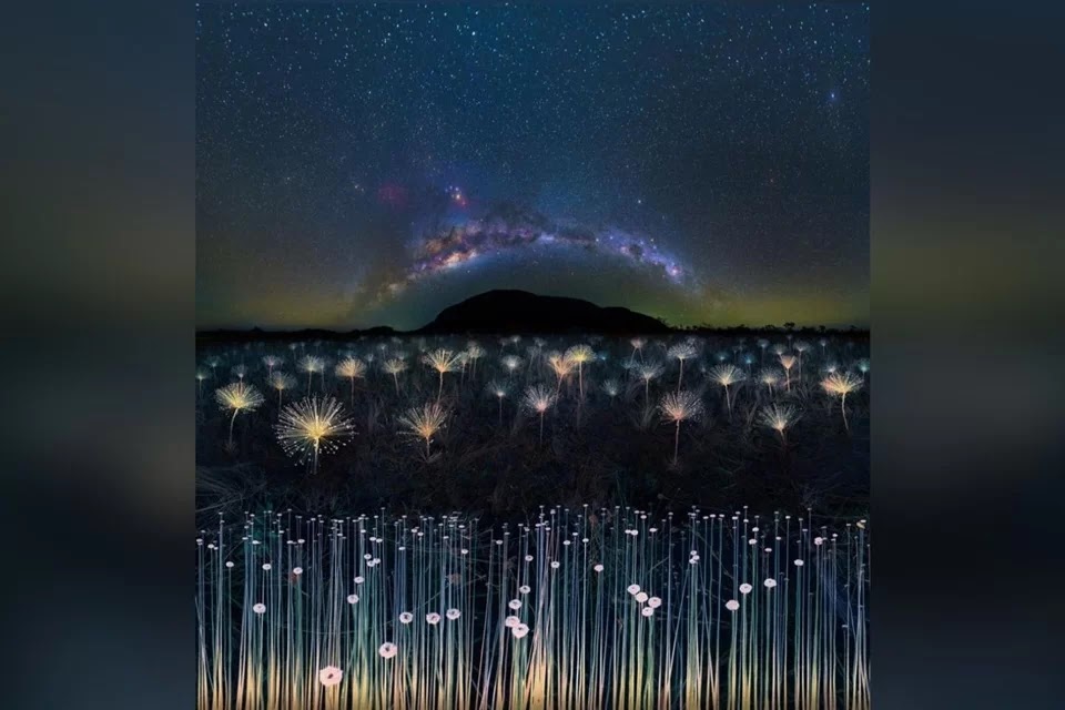 O fotógrafo utiliza lâmpadas em meio a escuridão para iluminar as plantas e criar um contraste com o céu escuro. Ao fundo, o fotógrafo consegue destacar a via láctea em um incrível encontro com as colinas do parque ambiental. O panorama que revela as cores e formas de estrelas e nebulosas foi feita através de uma câmera especializada para astrofotografia, que concede melhores detalhes do universo.