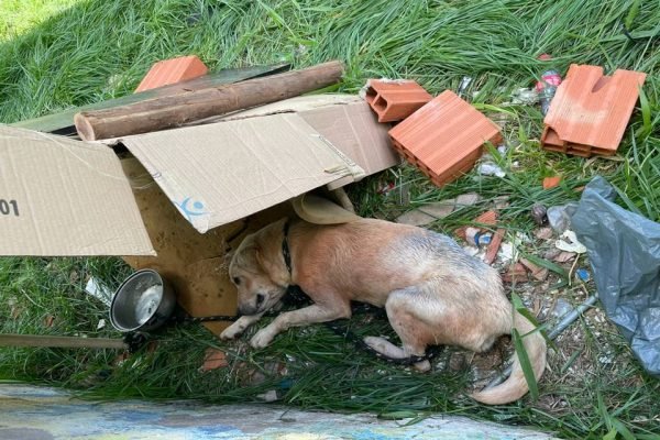 O cão está na clínica Miau.cão, no Gama. O relatório médico está em desenvolvimento, mas, segundo informações preliminares, ele teria sido espancado e, possivelmente, vítima de maus-tratos. O cachorro foi visto por populares e estava deitado em uma caixa de papelão e com aparência fraca.