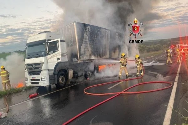 A via precisou ser interditada no sentido Brasília—Formosa para o trabalho dos bombeiros. Às 7h20, apenas uma faixa da pista estava liberada.