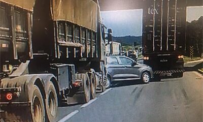 BrasilCarro é prensado entre dois caminhões em acidente na BR-116; Veja vídeoMotorista que seguia pela rodovia registrou o momento da batida; homem que estava no carro atingido teve ferimentos leves Foto: Reprodução Um carro ficou…