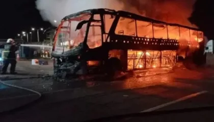 BrasilÔnibus pega fogo após passageiro fumar em banheiroVeículo tinha 47 pessoas – 46 passageiros e o motorista. Todos foram retirados antes de o fogo se alastrar Foto: Divulgação/Corpo de Bombeiros Um…