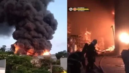 BrasilIncêndio de grande proporção atinge fábrica de plásticos em GuarulhosCorpo de Bombeiros trabalha no local para extinguir as chamas. Fogo começou por volta de 16h40, segundo autoridades Foto: Redes sociais/Divulgação Um incêndio de grandes…