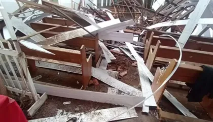 BrasilTeto de igreja desaba em Minas Gerais e deixa 80 feridosO teto desabou em uma das igrejas de Montezuma, no interior de Minas Gerais, na última quinta-feira (21/12) Corpo de Bombeiros de MG/Divulgação O…