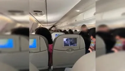 BrasilMulher agride comissária e causa alvoroço em aeronave; Veja vídeoA companhia aérea informou que a passageira apresentava sinais de embriaguez e foi conduzida pela Polícia Federal Foto: Reprodução Imagens feitas por passageiros mostram…