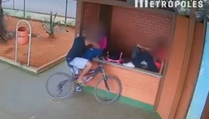 CeilândiaHomem entra em escola de bicicleta e assalta duas alunas; Veja vídeoJovens estavam sentadas na entrada da unidade de ensino quando foram abordadas pelo homem, na manhã desta quinta-feira (12/5) Foto: Reprodução/Metrópoles Um homem entrou…