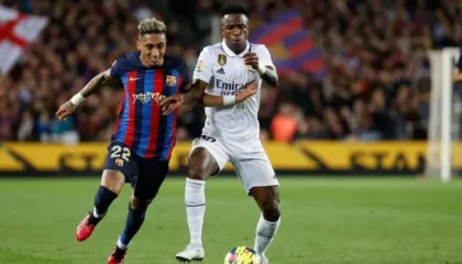 EsportesTorcida do Barcelona canta “Morra, Vinícius” em clássico contra o RealOs cânticos contra o brasileiro começaram ainda na primeira etapa, quando o Barcelona perdia de 1 x 0 para o arquirrival Reprodução Nesse domingo…