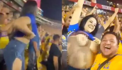 EsportesTorcedora se empolga e comemora o gol mostrando os seiosEnquanto Carla comemorava o gol, vários torcedores se aproximaram da torcedora e começaram a tirar fotos Foto: Reprodução Twitter Carla Garza, torcedora do Tigres do…