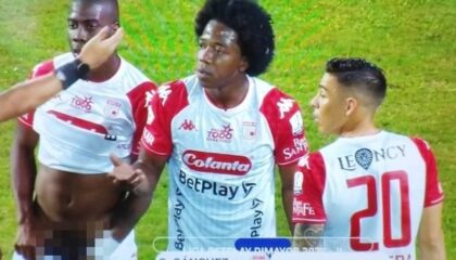 EsportesZagueiro colombiano mostra pênis para juiz durante partidaPara demonstrar sua revolta com o árbitro da partida, o zagueiro Geisson Perea abaixou o calção e mostrou suas partes íntimas durante jogo Foto: Reprodução/Twitter…