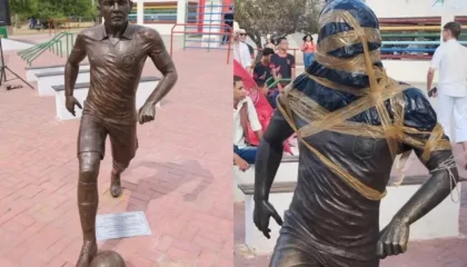 EsportesEstátua de Daniel Alves é vandalizada na cidade natal do atletaDaniel Alves, que é réu por agressão sexual na Espanha, teve estátua vandaliza em Juazeiro, na Bahia, nessa quinta-feira (7/9) Reprodução Estátua de Daniel…
