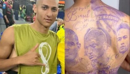 FamososRicharlison surpreende ao tatuar rosto de Neymar e Ronaldo nas costasCamisa 9 da seleção brasileira, Richarlison ainda incluiu na tatuagem uma frase dita a ele pelo Pelé Foto: Reprodução/Instagram A eliminação do Brasil na…