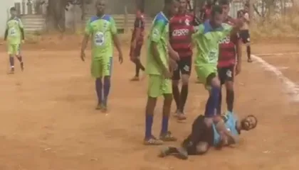 DFVídeo: juiz é agredido após expulsar jogador de partida no Entorno do DFJuiz levou rasteira, além de pisadas na cabeça e na costela, e teve dois ossos quebrados, durante jogo de futebol em Luziânia (GO) Reprodução…