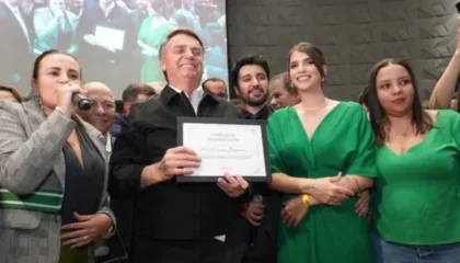 Goiás e EntornoBolsonaro recebe título de cidadão goiano em evento lotado de apoiadoresSob forte mobilização popular e aos gritos de “mito” e “o melhor presidente do Brasil”, Bolsonaro foi homenageado na Assembleia Legislativa Will Rosa/Alego/Divulgação Após…