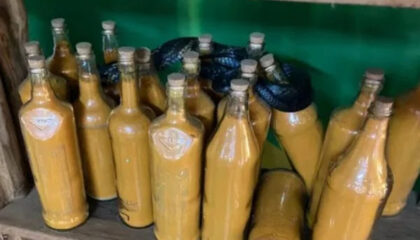 Goiás e EntornoHomem se surpreende ao encontrar cobra enrolada a garrafas de açafrãoComerciante se deparou com serpente em comércio em Catalão (GO). Animal foi capturado pelo Corpo de Bombeiros e solto em reserva ambiental Foto: Reprodução/Corpo de…