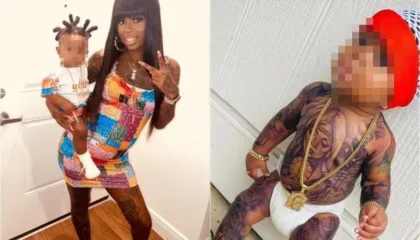 mundoMãe causa polêmica ao compartilhar fotos de bebê coberto de tatuagensA designer de moda Shamekia Morris fez a primeira tatuagem temporária no filho Treylin Armani quando ele tinha apenas 6 meses de idade Foto:…