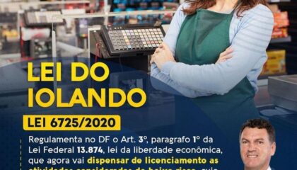 NoticiasA Lei nº 6.725/2020 de autoria do deputado da Inclusão IOLANDO para melhorar a vida da população. Essa Lei trás Menos burocracia para os empreendedores no DF! A Lei n° 6.725/2020, que é de autoria do nosso mandato, desobriga atividades comerciais de…