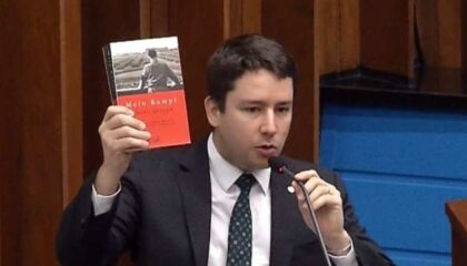 PolíticaDeputado do PL cita livro de Hitler em plenário da Assembleia LegislativaJoão Henrique Catan mostrou um livro de Adolf Hitler e pediu para que o parlamento se fortalecesse. Deputado argumentou que o episódio foi uma…