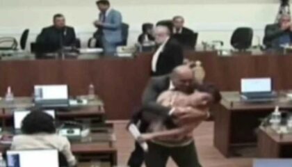 BrasilParlamentar beija vereadora à força em sessão da Câmara de FlorianópolisVereadores discutiam projeto, quando vereadora foi puxada pelo braço, abraçada por trás e beijada à força, sem prévia autorização Foto: Reprodução/Câmeras se segurança A…
