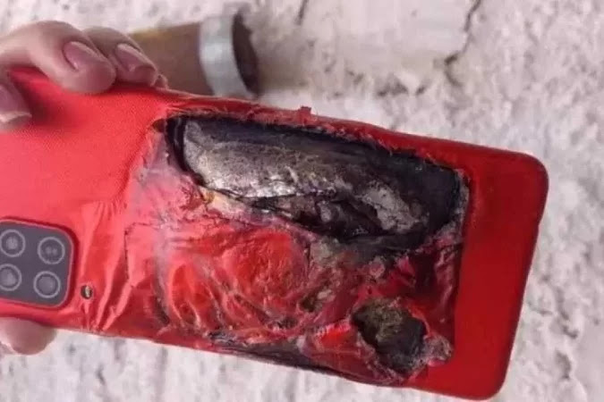 Ao perceber a situação, a mulher retirou o filho de perto do celular que começou a ‘inchar’ e explodiu.