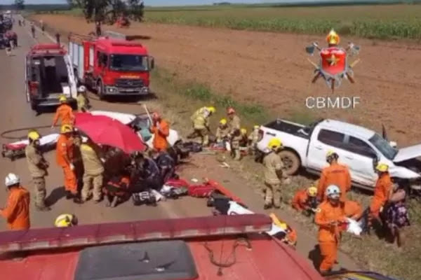 O Corpo de Bombeiros Militar do Distrito Federal (CBMDF) informou que os veículos envolvidos são um Fiat Palio e uma caminhonete Ford Ranger, ambos de cor branca.