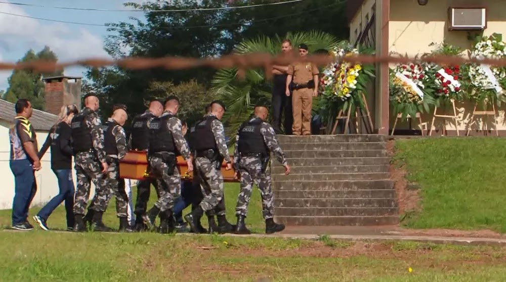 O corpo do policial militar Ricieri Chagar é velado nesta tarde de domingo (24) na sede do 16º Batalhão da Polícia Militar em Guarapuava, região central do Paraná.