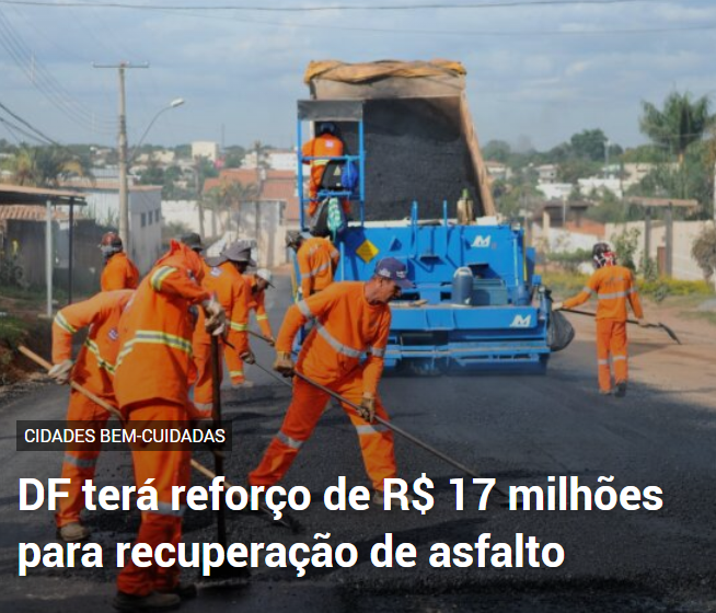 DF terá reforço de R$ 17 milhões para recuperação de asfalto
