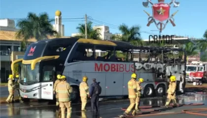 DF Vídeo: Ônibus de turismo com time de futebol pega fogo na EPTG O Corpo de Bombeiros foi acionado e conseguiu conter as chamas, que destruíram 60% do veículo CBMDF/Divulgação Um ônibus de turismo que que trafegava…