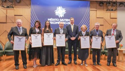 DF Ibaneis Rocha recebe Medalha Mérito Sistema Fecomércio-DF em reconhecimento ao apoio ao setor produtivo Honraria estreia celebrando autoridades e empresários que impulsionam o comércio, os serviços e o desenvolvimento econômico do DF Tony Oliveira/Agência Brasília O governador Ibaneis…