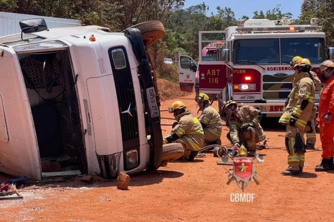 Motorista perdeu o controle da direção enquanto trafegava na vicinal do Gama. Dois passageiros foram arremessados da cabine e em seguida atropelados pelo próprio caminhão, ficando presos debaixo das ferragens