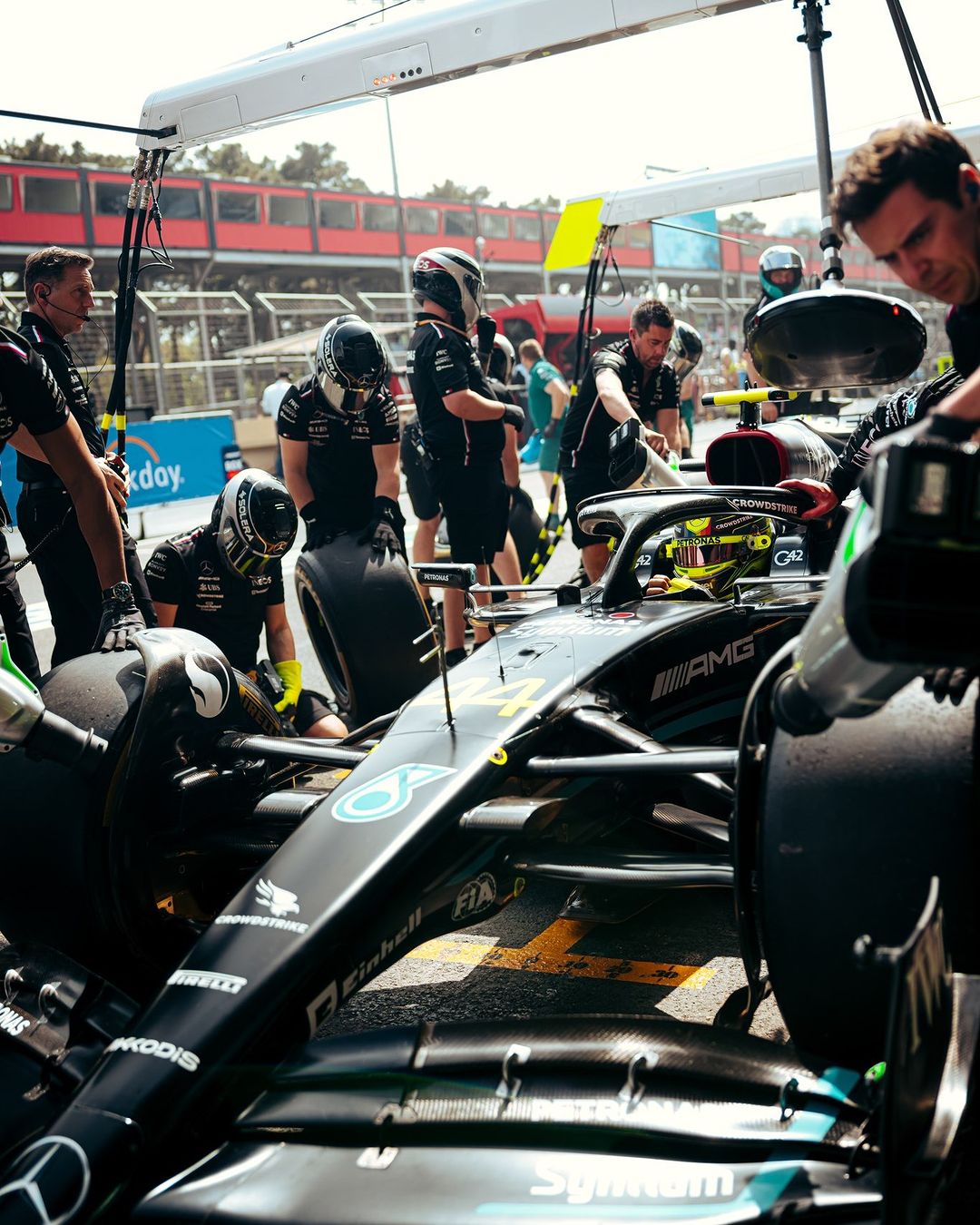 “Pensei nisso e vi os pilotos da Ferrari nos telões da pista e, claro, você imagina como seria estar de vermelho… Mas aí vou para a minha equipe, para a Mercedes, e essa é a minha casa. Estou feliz onde estou. Ainda não assinei um contrato, mas estamos trabalhando nisso”, assegurou.