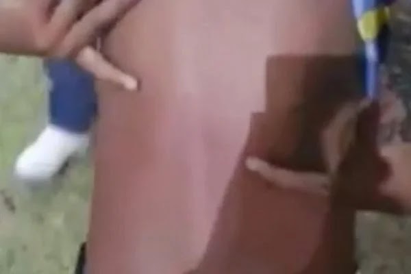 “Eu entrei. Aí ela foi e me deu um copo. Aí eu falei tá bom. Aí na hora que eu fui encher, ele pegou o copo de mim e deixou lá no lixo. Daí quando fui correr, ele me deu uma cintada”, contou o menino, que mostrou as marcas da cintada em suas costas.
