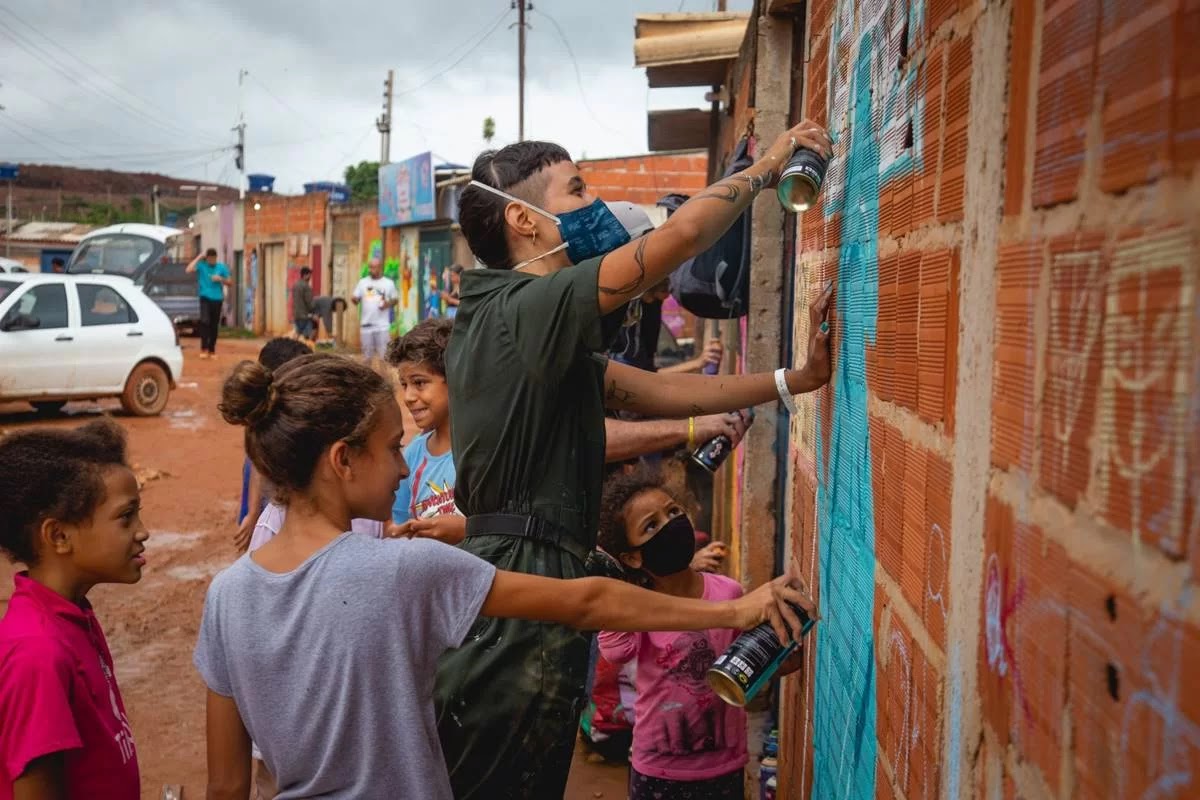Os artistas se encontram em uma comunidade que já teve o maior lixão a céu aberto do país para capacitar jovens e otimizar a estética local