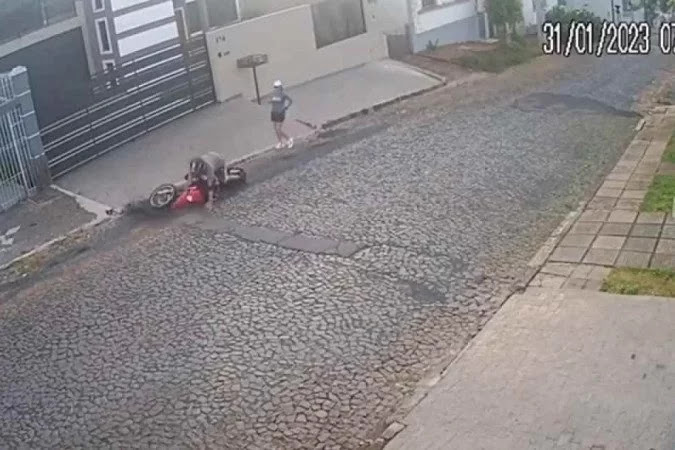 Um homem de 32 anos caiu da moto após tentar passar a mão nas partes íntimas de uma mulher em Ponta Grossa, no Paraná. No vídeo, registrado por câmera de segurança, é possível ver o motociclista acelerando enquanto a vítima caminhava pela calçada. Ao chegar perto dela, o homem estica o braço e tentar apalpar a pedestre, mas ele acaba se desequilibrando e indo ao chão.