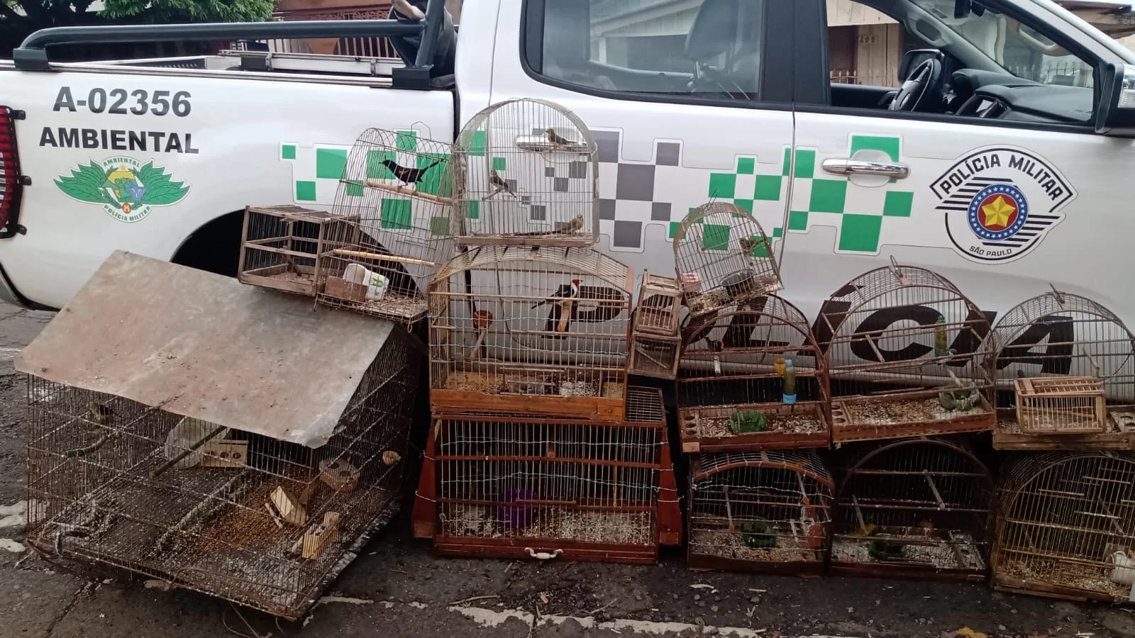 Polícia Militar autuou homem por manter 28 aves em cativeiro no interior de São Paulo; após flagrante, pássaros foram devolvidos à natureza