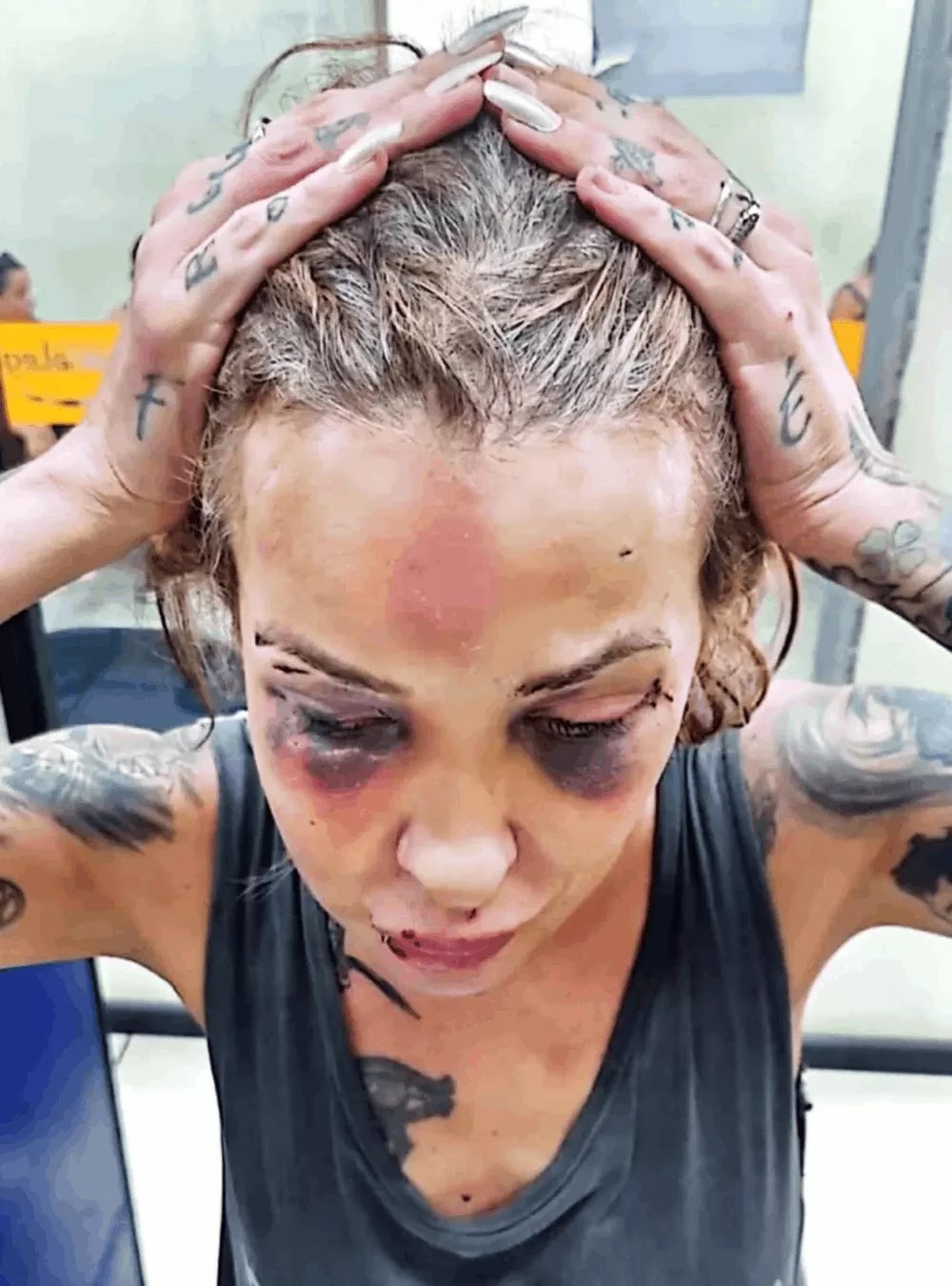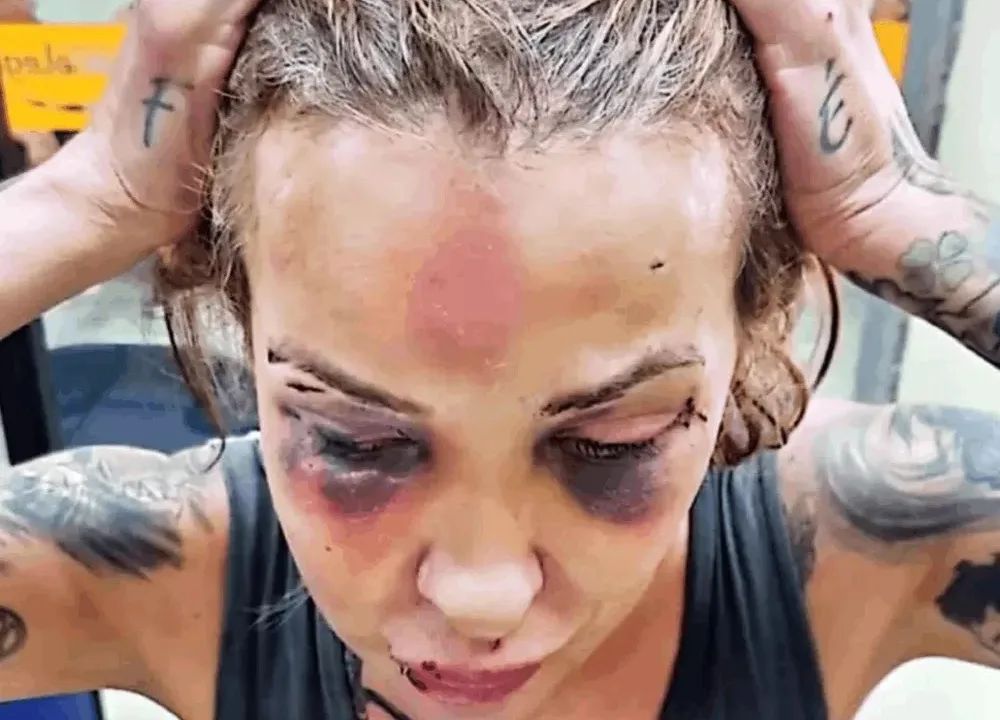 “Foi ciúme, misturado com loucura. Ele cria histórias na cabeça dele – falou que tinha clonado meu celular. Ele inventou um motivo e partiu para cima de mim – está aqui o resultado. Estou com uma mandíbula de titânio, estou torta.”