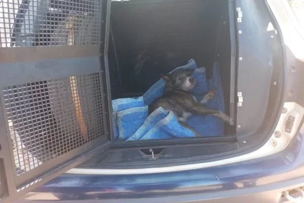 Ferida gravemente, cachorra sem raça definida luta para se recuperar e ainda está em estado grave, segundo protetores de animais