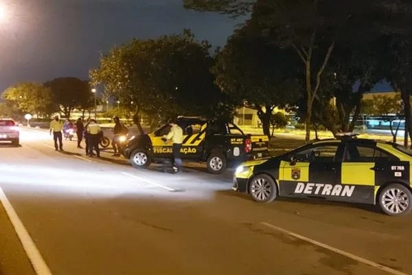 Três homens foram autuados pelo Departamento de Trânsito do Distrito Federal (Detran-DF) ao chegarem de moto no estacionamento do Shopping Popular para realizarem a prova da Carteira Nacional de Habilitação (CNH), na manhã desta sexta-feira (18/2).