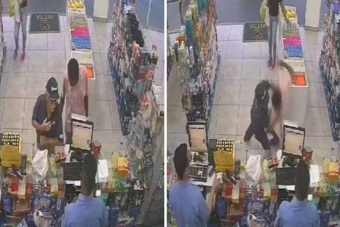 As câmeras de segurança registraram o momento em que o suspeito tentou pegar o dinheiro do bolso da vítima