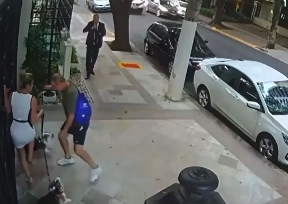 Uma câmera de segurança registrou o momento da agressão, na última segunda-feira (16). Nas imagens, é possível ver que a advogada estava parada com seus dois cachorros na frente de um prédio, quando um homem passa e dá pontapés nela e nos animais.