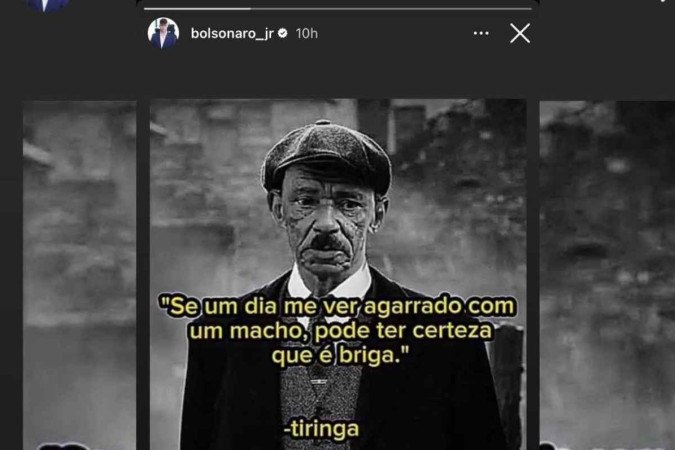 O filho do ex-presidente Jair Bolsonaro, Jair Renan, ironizou nas redes sociais o suposto romance vivido com o ex-assessor dele, Diego Pupe. O “04” publicou um story onde lê-se: “Se um dia me ver agarrado com um macho, pode ter certeza que é briga”.