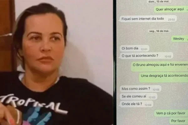 Em um dos diálogos no aplicativo de mensagens, Cíntia fala para o irmão, Wesley: “Bruno veio almoçar aqui e foi envenenado. Uma desgraça está acontecendo aqui”, disse, no dia seguinte à internação do menino. “Mas, como assim? Se ele comeu aí. Onde ele está?”, pergunta o homem de volta.