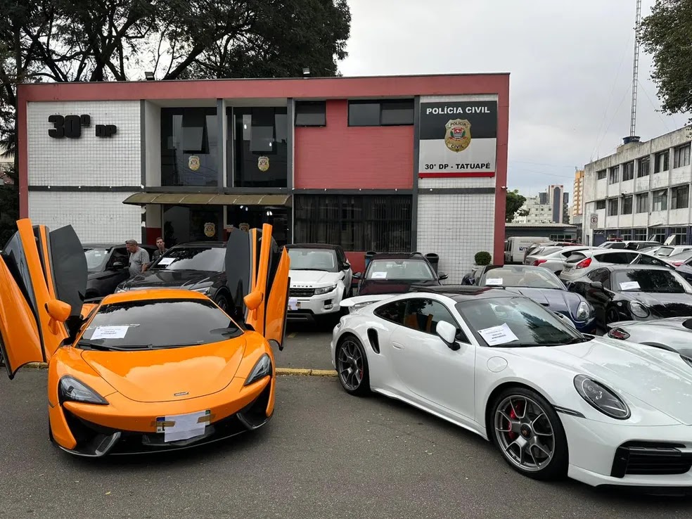 Ainda não há valor estimado dos veículos, que ainda devem passar por perícia e avaliação do histórico de negociação. Automóveis ficaram estacionados em frente ao 30º DP do Tatuapé, na Zona Leste da capital.