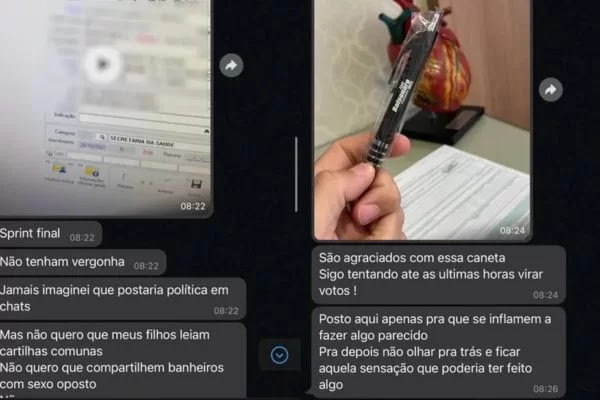 “São agraciados com essa caneta. Sigo tentando até as últimas horas virar votos! Posto aqui apenas para que se inflamem a fazer algo parecido para depois não olhar para trás e ficar aquela sensação que poderia ter feito algo”, escreveu o médico no aplicativo de troca de mensagens.