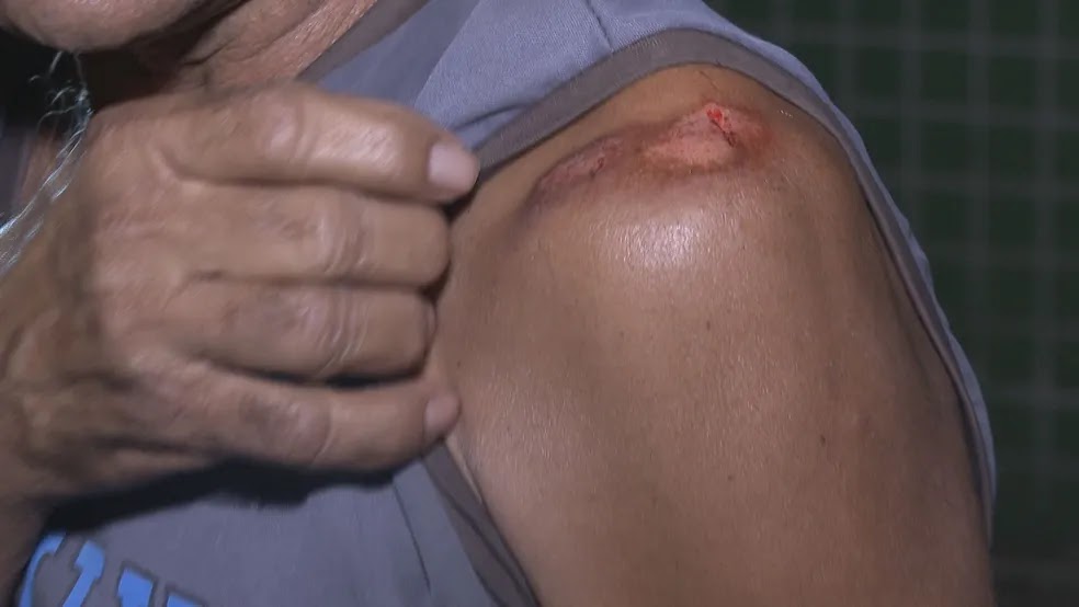 Antes mesmo da chegada da PM, os avós correram para a casa e, quando chegaram lá, o criminoso ainda estava no local e lutou com os idosos. O avô, de 63 anos, machucou o pé e ralou os ombros e os braços enquanto tentava conter o ladrão.